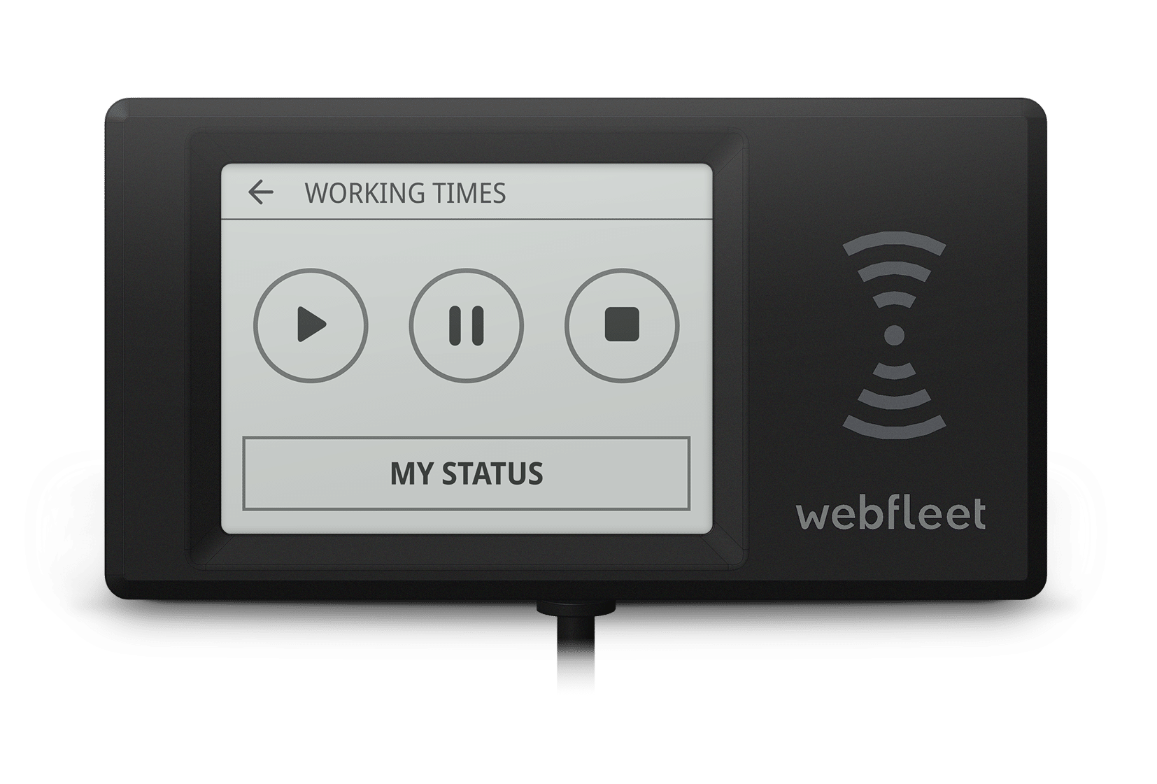 Zusätzlich zur Fahrtenbuchfunktion erfasst das PRO i Arbeitszeiten direkt im Fahrzeug. Status wie Arbeitsbeginn, Pause oder Arbeitsende können für Fahrer und Mitfahrer erfasst werden. Die Auswertung erfolgt zentral in Webfleet – inklusive standardisierter Reports